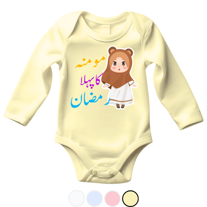 Introducing our Beautiful Custom Name 1st Ramadan Baby Romper ?: where comfort meets celebration! Crafted with premium fabrics and adorned with charming prints, these rompers are the perfect attire for your little one's Ramadan festivities. Let your little star shine bright during this special occasion with our delightful rompers, designed to make every moment memorable.
